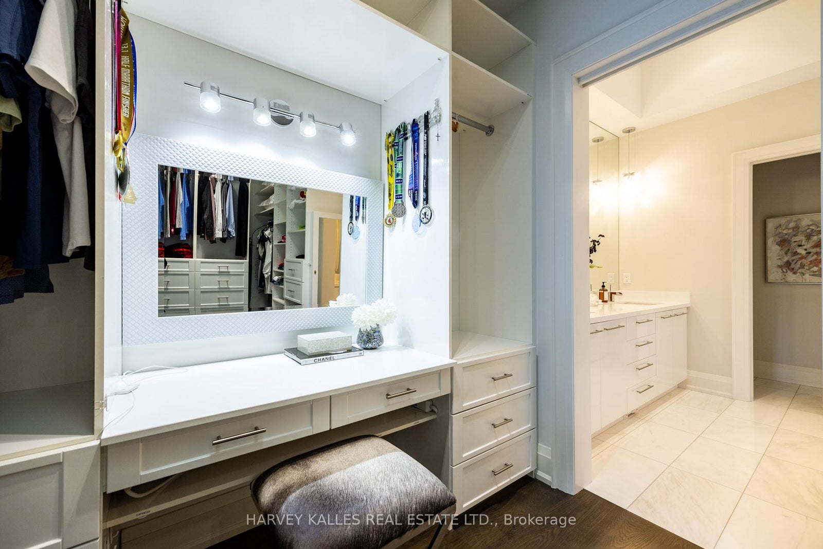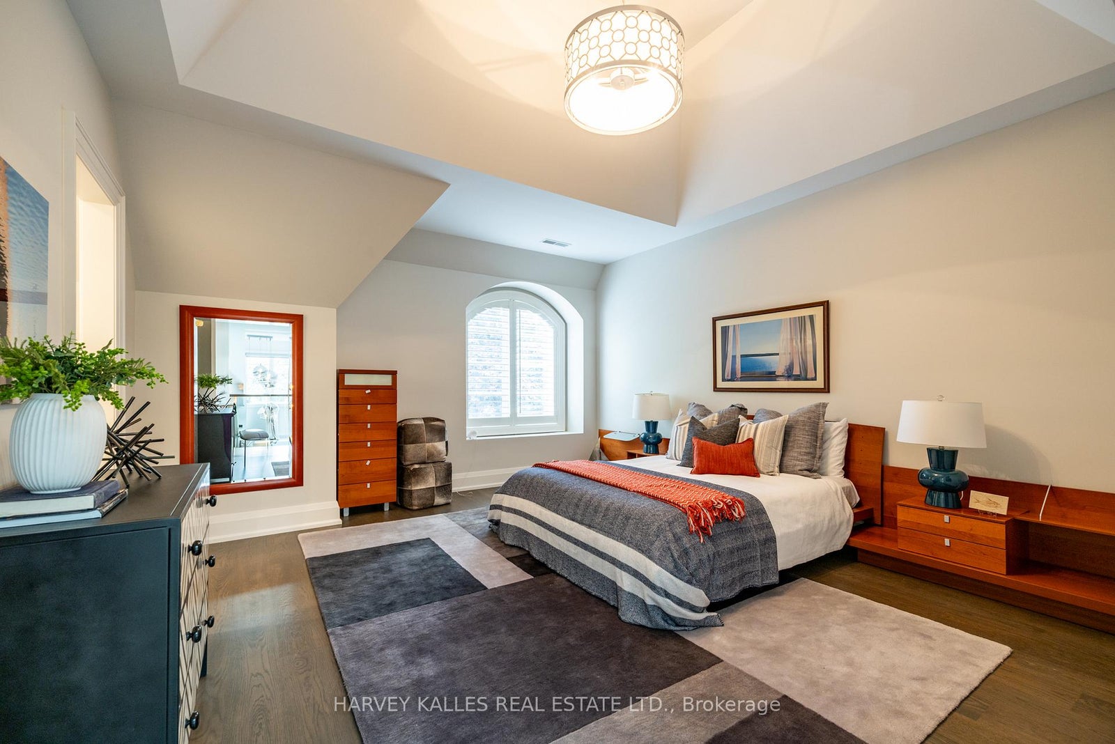 Welcome to "Quatorz Sulgrave," a custom luxury home in the prestigious St. Andrews neighbourhood of Toronto. Completed in 2014 by Rostek Homes with classic architecture by David Wooldridge and modern transitional interiors by CMID, this residence offers approximately 7,900 Sq. Ft. of total living space, including ~ 5,000 Sq. Ft. above grade, on a 90' x 125' lot. Designed with timeless elegance, the Indiana limestone façade and professionally landscaped gardens set the stage for refined living. Inside, 10' ceilings, oak hardwood floors, Savaria elevator, applied mouldings, and custom millwork showcase exceptional craftsmanship. The main floor blends formal and family living with a living/dining room, study, and an open-concept chef's kitchen featuring Sub-Zero/Wolf appliances, quartz waterfall island, butler's pantry, and breakfast area overlooking the two-Storey family room with soaring 20' ceiling and linear fireplace. The upper level offers 4 vaulted bedrooms with ensuites, including a serene primary retreat with fireplace, dressing room, and 7-piece spa-inspired ensuite. The finished lower level includes a recreation room, games room, wet bar, fifth bedroom/gym, cedar closet, arcade, and cold cellars. Outdoor living is enhanced with stone interlock, outdoor kitchen/wet bar, fenced yard, and standby generator. Additional features: 4-car built-in garage with EV charger, 6-car drive, smart home wiring, built-in speakers, alarm and camera system, and dual furnaces & A/C. Ideally located near Bayview Village, The Granite Club, Highway 401, and some of Toronto's top private and public schools. A rare opportunity to own a custom-built St. Andrews luxury home of enduring style, exceptional quality, and unparalleled convenience.